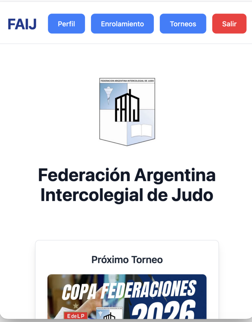 Participe de las actividades del Judo bajo el ámbito de Faij, parte de la Confederación Argentina de Judo(CAJ) en todas las modalidades: competencia, defensa personal y el Judo como actividad social y formativa.